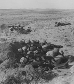 Tirailleurs sénégalais creusant une tranchée dans le désert