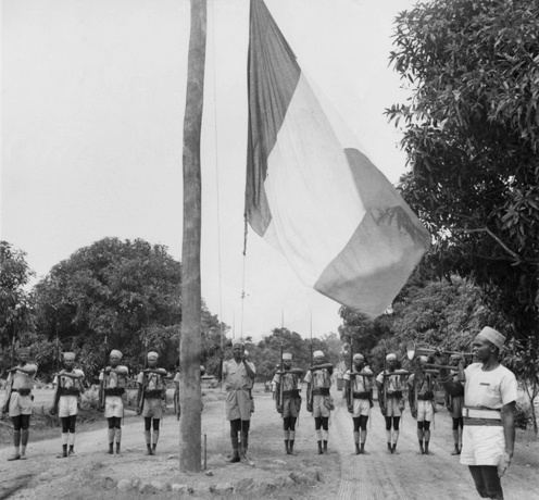 ![]() 16 août 1942. Soldats du bataillon de marche de l’Oubangui-Chari. Cette unité fit partie de la 1ere Brigade française libre qui résista à Bir Hakeim aux assauts des forces allemandes et italiennes pendant plus de deux semaines (26 mai - 11 juin 1942). Bangui était la capitale de la colonie de l’Oubangui-Chari qui avait rallié la France libre dès le mois d’août 1940. Provenance: NARA |