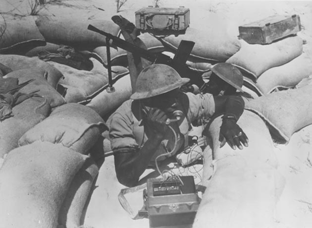 Un soldat du 1er régiment d’artillerie des Forces françaises libres dans le désert de Libye (sans date).