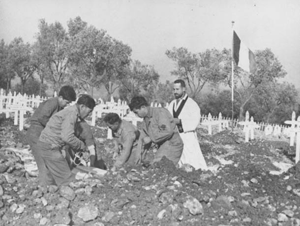 L’enterrement d’un soldat dans le cimetière français de Venafro,
