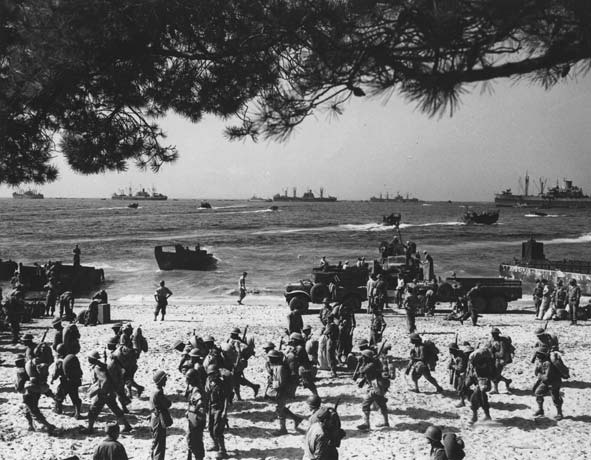 ![]() Le débarquement du bataillon de marche n°4 de la 1ère Division française libre. Ce bataillon fut l’une des toutes premières unités de la France libre. Constitué au Cameroun, il s’est battu aux côtés de l’armée britannique dès le printemps 1941 au Moyen-Orient. Engagé dans les campagnes de Tunisie, et d’Italie, il s’est illustré enfin dans la bataille de Provence puis au cours de la libération de l’Alsace. Provenance: NARA |