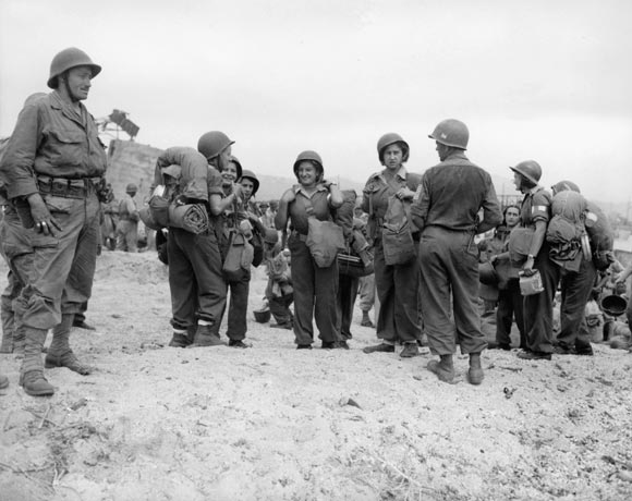 Des opératrices radio de l’armée française plage de la Foux à Cogolin.