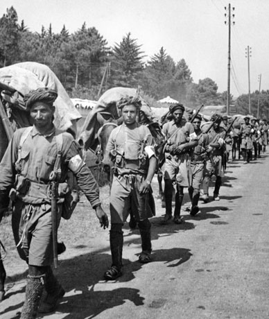 Goumiers marocains sur une route du Var.